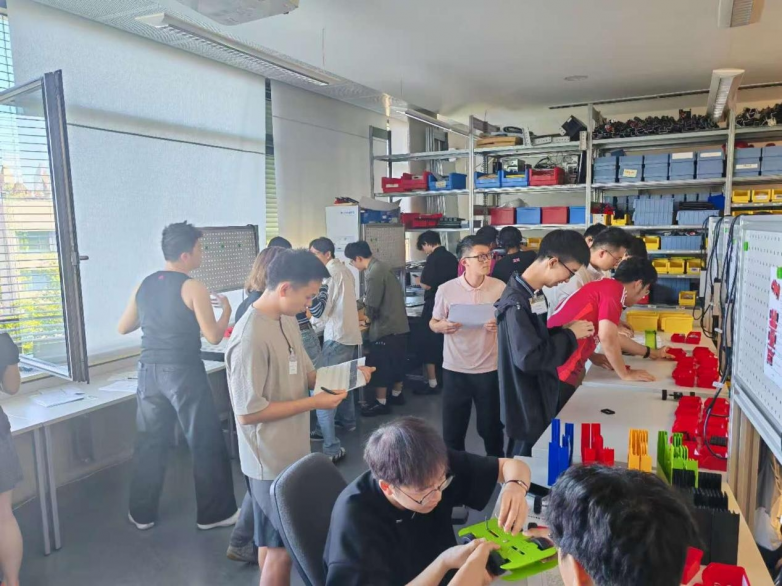 此外,访学团队前往慕尼黑应用技术大学智能制造实训中心开展沉浸式实践课程。实践环节采用“角色赋能 + 任务驱动”模式,依据汽车生产全流程的岗位需求,同学们分别化身公司总监、工艺工程师、质量检测员等角色,完整复现了从零部件上料、精准焊接、自动化输送线物料转运,到最终整车下线检测的全流程运作。在实践过程中,同学们围绕流水线的上料、加工、输送等各个环节展开深度学习,重点了解机器人与自动化技术的应用研究。通过观察与分析,大家明确了机器人与自动化设备之间的协同机制,充分认识到二者在提高生产效率、保障产品质量等方面的重要作用。同时,通过老师的讲解,同学们对机器人与自动化技术在汽车制造领域的发展前景有了更清晰的认知。