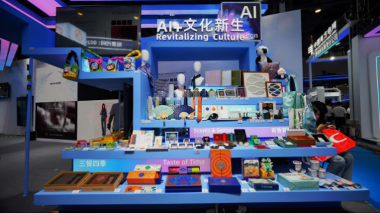 其中,“AI+文化新生”板块作为展区核心亮点,集中呈现了“广西礼物”“百天百款”产品矩阵,这批产品依托广东领先的AI技术与创意设计资源,深度挖掘广西民族文化、非遗技艺、自然生态及特色产业资源,通过数字化转译打造而成,涵盖“三餐四季”“有香有色”“山川造物”“身上广西”“山河入梦”五大主题,全面覆盖“吃穿用”全生活场景。