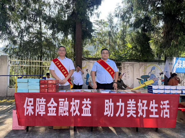 活动以喜闻乐见的形式展开,通过在村党群服务中心广场设立宣传点、悬挂横幅、发放图文并茂的宣传册以及现场讲解等多种方式,向现场群众普及金融知识。针对当地群众的接受特点,宣传内容重点围绕防范电信诈骗、识别非法集资、远离“假保险”等高频风险点展开。活动采用方言和真实案例,生动剖析“冒充亲友借钱”“高息理财诱惑”等常见骗局,确保金融知识能够“零障碍”传递给每一位群众。