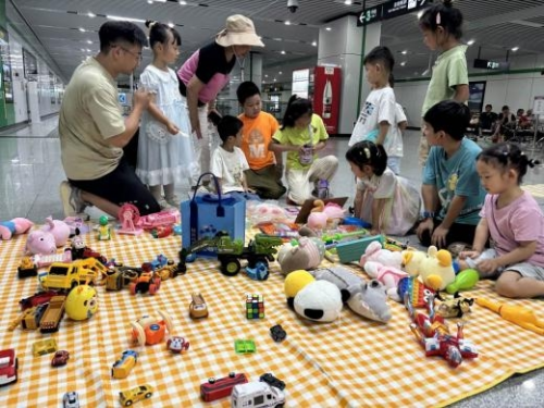 一场新颖独特的“跳蚤市场”活动拉开了暑期欢乐的序幕。活动为车站周边小朋友们提供了一个闲置物品交换、社会实践锻炼的平台。孩子们化身“小掌柜”,在买卖与交换中不仅学会了沟通与计算,更初步理解了资源循环利用的环保理念,现场欢声笑语,交易热烈,充满了童真与活力。