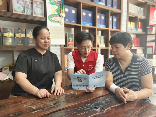 图为香溢志愿者给零售户做防诈骗知识科普 傅利强 供图