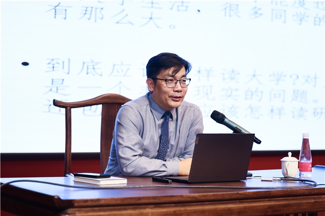 随后,包教授从“价值与本质”层面重新审视了大学教育的意义。“真正的大学教育,不是知识的灌输,而是智慧的启蒙;不是技能的培训,而是人格的塑造。”他鼓励学生从“学知识”转向“练思维”、从“被动接受”转向“主动建构”,尤其应注重培养提出新问题、构建新理论、创造新表达的能力。