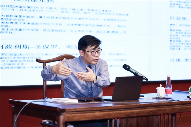 讲座伊始,包刚升教授以生成式AI工具引发的社会热议为切入点,指出当前教育体系正面临一场“前所未有的挑战与重构”。他谈到,AI不仅改变了知识获取与创造的方式,更对传统人才培养模式和职业发展路径提出了根本性质疑。“如果我们传授的知识AI一秒就能答出,如果我们训练的技能AI一秒就能完成,那么教育的核心究竟应该是什么?”这一发问引发了在场观众的深刻反思。