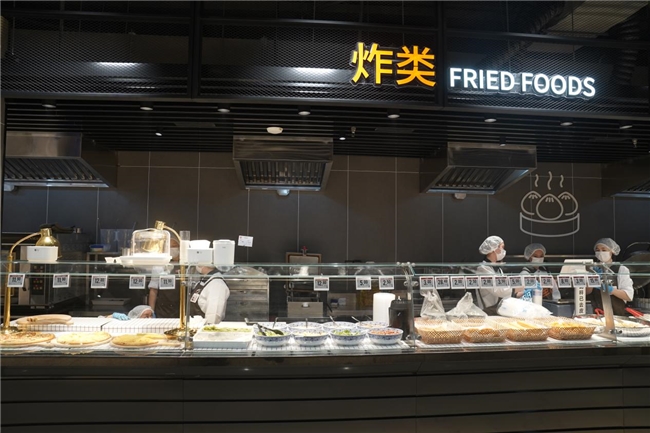步入熟食烘焙区,各类档口烟火气十足。现场制作的鲜肉包、烤鸡、炸水饺等香气四溢,刚出炉的烤鸭泛着油亮的光泽,新鲜出锅的小龙虾堆成“红霞山”,麻辣、蒜香、十三香等三种口味供消费者选择。在烘焙区,明厨亮灶的透明操作间里,师傅们正现场制作各类面包。据悉,调改后的烘焙工坊全部改为自营模式,严格杜绝使用代可可脂、氢化植物油、人造奶油等原料,产品线也同步焕新,除保留经典款外,重磅引入当下爆款的“丰收的喜悦”、“核桃满满”以及提拉米苏等明星单品。