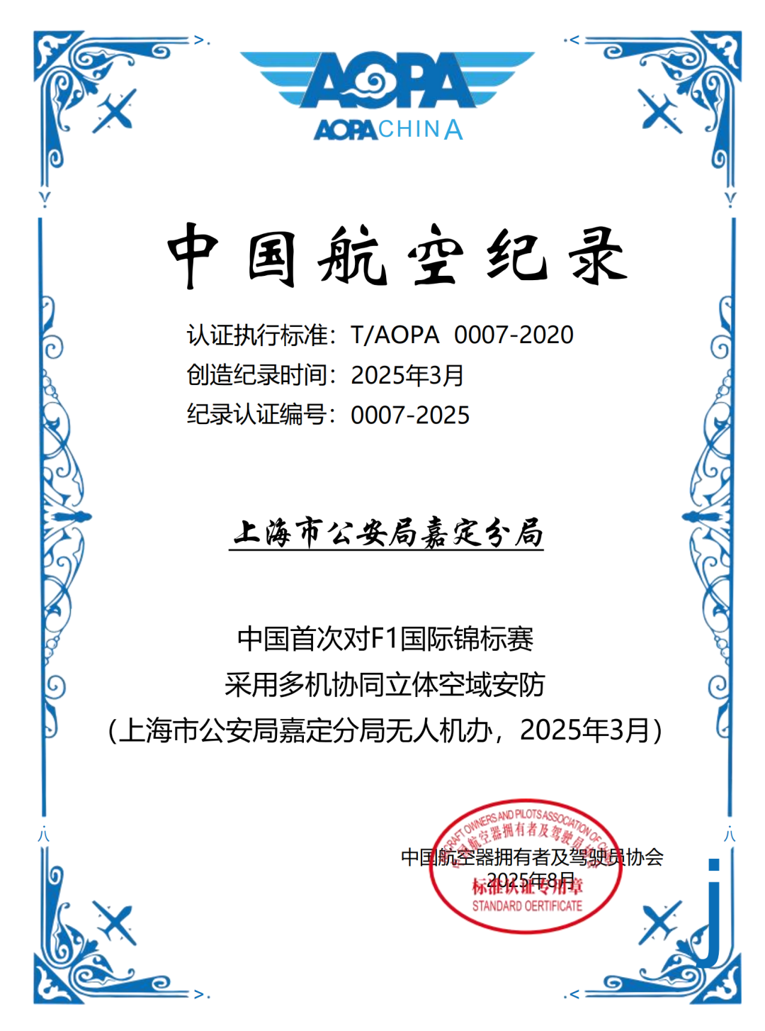 2025年,上海市公安局嘉定分局无人机办在F1国际锦标赛(即世界一级方程式锦标赛中国大奖赛)中,首次建立“多机协同立体空域安防”体系,并成功申报中国航空纪录。通过创新“备案-审批-告知”闭环机制及空域监测系统,实现“预防-监测-处置”全链条管理,解决了传统安保视角盲区问题。该实践为大型活动安保提供“有人机与无人机融合”“多机协同”经验,获媒体关注与社会认可,标志我国赛事空域安全管理进入立体化、数字化新阶段。