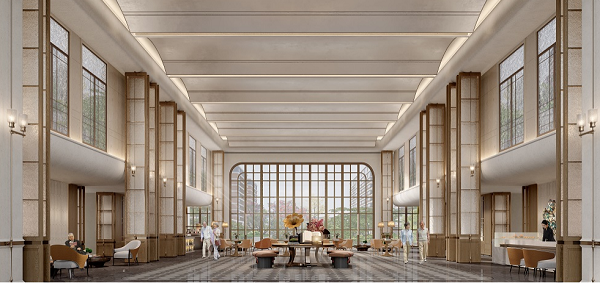 泰康之家·浦园项目以“浦育林生,海韵花园”为设计理念,依托黄浦江的极致江景与周浦塘河的天然景观,在上海这座现代与传统交织的城市中,为长辈打造出一个在国际大都市内静享自然优雅,推窗尽赏江面波光绿意的“城市花园”。