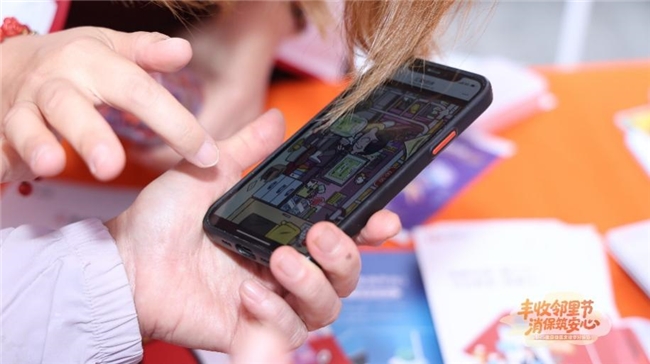 现场公司志愿者组织参与公众参加线上有奖问答,精美的宣传纪念品吸引了公众竞相参与,在游戏中学习金融知识赢取精美纪念品。