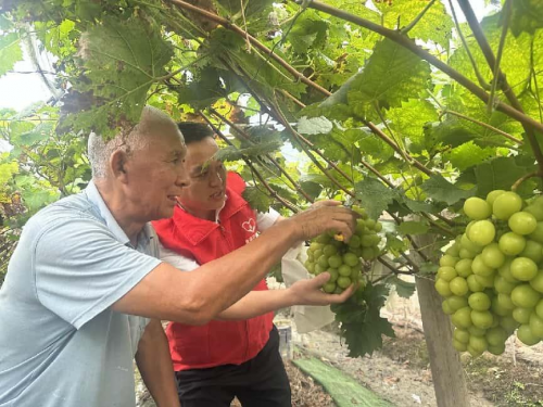 农户林德生快步走到他身边,粗糙的手掌轻轻托住果实,“小伙子,剪的时候要留点果柄,没了它保质期就短了。” 林德生边说边示范,拇指和食指捏着果剪,“咔嚓” 一声利落剪下,果穗稳稳落在志愿者的手中。
