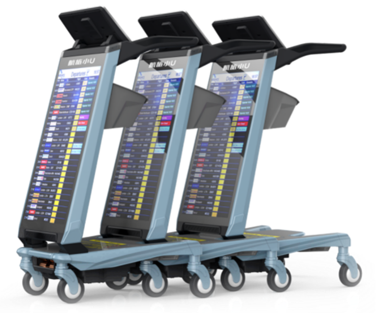 作为智慧机场数字化运营的领跑者,益航科技“航旅小U(USMT)”不仅是一款智能手推车,更是一个集成了多项前沿技术的综合服务平台。它配备14英寸互动屏和27英寸航显屏,可提供航班动态、室内定位导航、登机提醒、机场特情播报等出行信息服务,同时支持手机充电、影视娱乐、本地商业等旅客服务内容,全方位解决旅客候机期间的无聊问题。