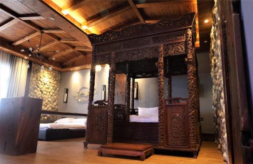 “这些老船木都是有灵性的,每一块都藏着大海的故事。” 店主王文彪轻抚着船木吧台说道。作为土生土长的本地人,他七岁便跟着爷爷在古竹溪渡口撑筏摆渡,船文化早已融入血脉。2015 年,在老挝海滩见到一艘 48 米长的木制古船时,乡愁瞬间涌上心头 —— 他毅然拆解古船,历经周折将 170 多吨船木运回故乡,以 “修旧如旧” 的理念,将三幢老宅改造成如今的善渡民宿。
