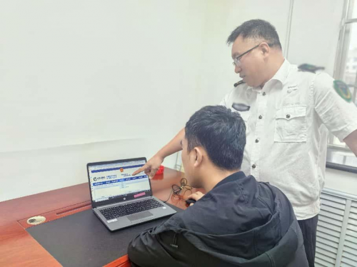 图为:卢龙县局专卖工作人员指导零售客户进行网上业务申办