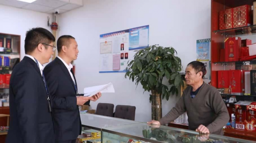 图为:卢龙县局专卖工作人员上门为零售客户办理许可证延续业务