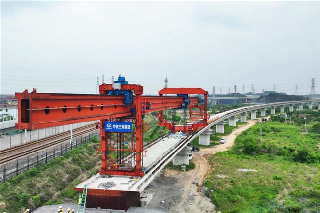 建设中,项目部始终将工艺工法创新作为提质增效的核心抓手,围绕常山江特大桥矮塔斜拉桥、跨九景衢铁路转体桥、毛塘山立交桥上跨沪昆高铁千吨连续梁拆除等重难点工程大力开展技术攻关,总结出《高速铁路大直径钻孔桩套钻快速成孔施工工法》等省部级施工工法3项、国家实用性专利7项,成功攻克了“铁路大跨径三线矮塔斜拉桥建设”、“上跨高速铁路千吨连续梁拆除”等多项施工难题。项目部大力推广应用信息化、智能化技术,自主研发的轨道铺设信息化系统,实现了铺轨作业管理信息化和可视化,提高了铺轨效率,确保了施工安全。