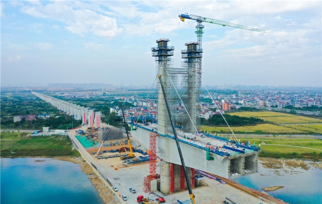 中铁三局参建的杭衢高铁四标工程正线全长25.586公里,联络线长12.274公里,其中桥梁20座、路基18段,铺轨291.99公里。管段沿线地形复杂,涉及多处桥梁特殊孔跨,多次跨越既有铁路、高速公路、省道及河道。其中常山江特大桥矮塔斜拉桥是国内最大跨度高速铁路三线矮塔斜拉桥,也是全线结构最复杂、单体工程量最大的桥梁结构工程,施工难度大,安全风险高。