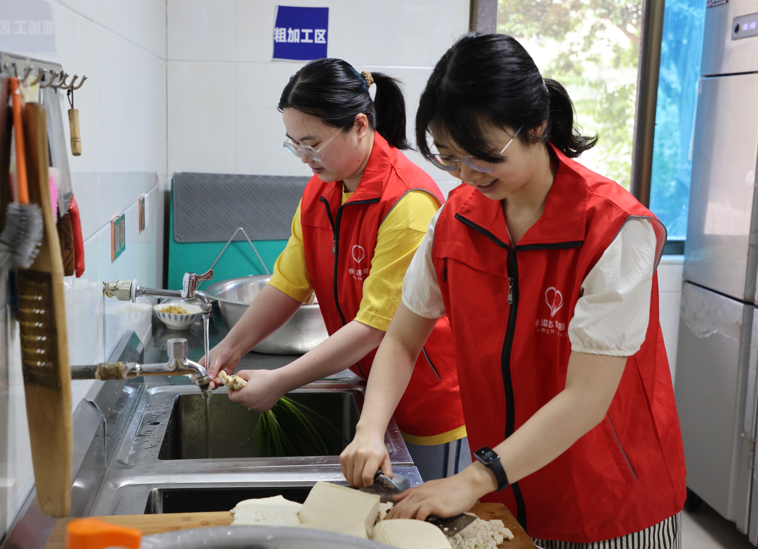 食堂里,另几位志愿者正张罗着饺子宴。一张张圆润的面皮在掌心旋转,裹上鲜香的馅料,指尖一捏一折,便成了胖乎乎的饺子,错落有致地排在竹匾上。志愿者和老人们一边包着饺子,一边讲述往昔,笑语声中,浓浓的情谊与饺子的香气一同在空气中酝酿,抚平了因台风而生的焦灼,将风雨挡在了温情之外。