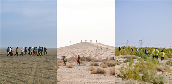 图注:200人徒步穿越戈壁沙石灌丛等地貌抵达蚂蚁森林