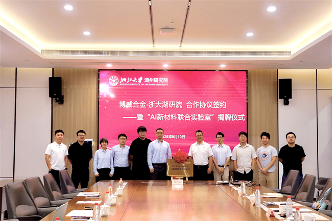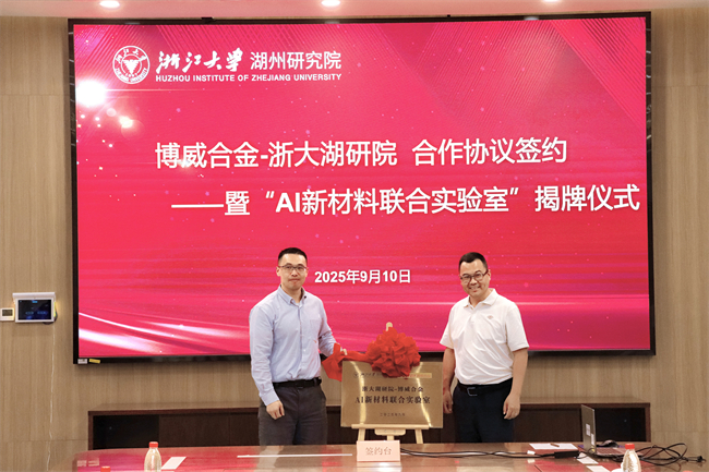浙江大学湖州研究院院长许超表示,研究院将充分发挥科研与人才优势,与博威合金共同探索AI与新材料的交叉创新,推动科技成果转化与产业化应用,为湖州当地、省内乃至全国的新材料产业发展贡献力量。博威合金数字化研发中心总监李吉宝指出,此次合作是博威合金推动技术创新与产业升级的重要举措,希望通过与研究院的深度合作,加速人工智能技术在新材料研发中的应用,为企业发展提供更强的科技支撑。