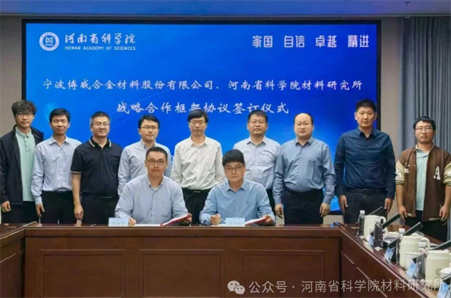 几乎在同一时期,博威合金也与河南省科学院材料研究所达成战略合作,共建联合研发中心。会上,双方围绕铜及铜合金材料领域关键技术问题及合作切入点展开热烈讨论,明确了联合攻关方向,初步形成了技术开发项目清单,为后续合作的扎实推进奠定了坚实基础。