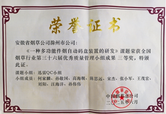 滁州烟草坚持以赛促学、以赛促干,真正让“想创新、能创新、善创新”成为滁烟新风尚。2024年以来,新增QC小组19个,其中青年团队占比达65%。围绕营销服务、专卖管理、物流配送等领域的难点问题,积极开展创新课题研究。2个项目分获省局(公司)科技进步奖和管理创新三等奖,取得省局(公司)群创奖项2项、省质协群创奖项4项、省质量品牌促进会群创奖项3项。基层创新参与率从41%跃升至77%;定远、凤阳、天长、直属等县级局通过微创新工作,实现知识产权“零的突破”。全年共得到8项实用新型专利授权、7项计算机软件著作权授权。