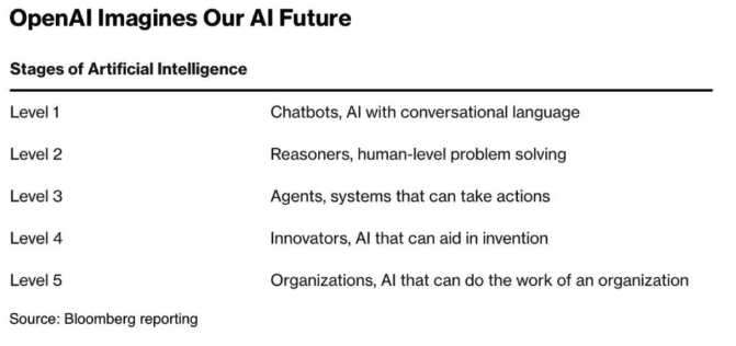 在AI通向AGI(通用人工智能)的演进路径中,OpenAI 首席执行官Sam Altman提出了一套AI发展分级体系,从基础对话、复杂推理,逐步进阶到自主代理、创新突破,最终抵达系统级组织协同。