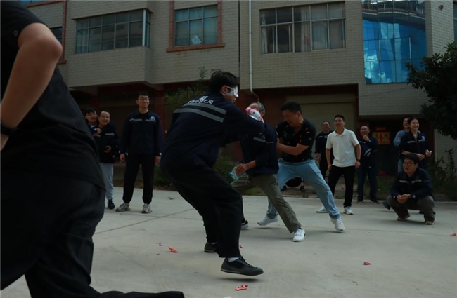 沙场点兵,策略为王:“决战沙场”升华活动主题。压轴的“决战沙场”活动将策略与感知能力推向极致。每队的蒙眼队员手持“武器”,在指定区域内依靠听觉与直觉“搜寻”其他队伍所扮演“目标”。“目标”灵活移动,尽力规避,蒙眼队员通过队友提示、忽略干扰呼喊小心翼翼探步前行,每一次的“击中”都伴随着欢畅的喝彩。这场别开生面的“对决”,将个人的勇气与镇定展现的淋漓尽致,团队的指挥、沟通与信任更是得到充分表达。