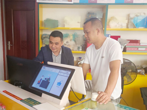 (图为宜都烟草客户经理指导客户使用店铺管理系统)