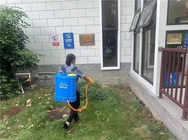 结合当前登革热防控要求,和润环境公司每日早晚两次对公厕内外环境进行药物喷洒和蚊蝇孳生点清理,重点对墙角、排水口、垃圾桶周边等进行消杀,切断病媒传播途径,守护市民健康。