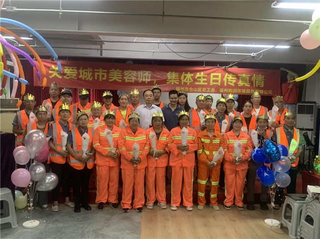 福州市仓山区总工会、福州和润环境服务有限公司通过集体生日会的形式,表达了对环卫工人的关爱与尊重,让他们感受到温暖和关怀,也体现了城市对“城市美容师”辛勤付出的认可和感谢。