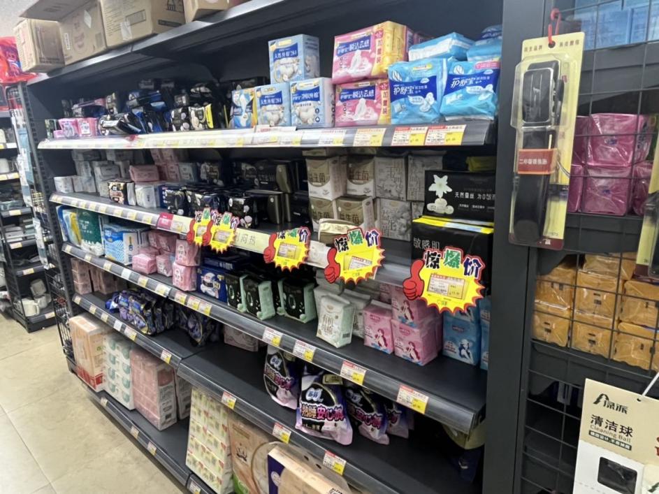 图为玉环家世界超市生活用品区打折商品