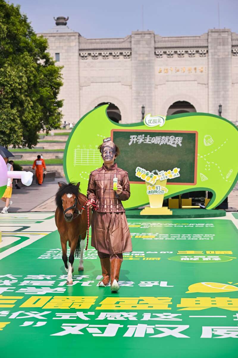 不久前,中国青年报社和优酸乳共同策划了“开学主嚼(主角)就是我”主题活动,也在鼓励大学新生了解、走进所学专业。据优酸乳开学季项目组负责人介绍,项目团队制作了“我是某某专业新生”多款趣味海报,贴满很多大学路。今年暑期,项目团队调研20多所高校后发现,很多学生最大的开学遗憾是“没和爸妈在校门口好好合影”。于是,他们在很多高校设置“头条报纸拍照机”,希望为新生生成一份个人《开学日报》。活动在上海大学路举办时,一位历史系男生cos成兵马俑,还牵来一匹马拍照。一位河北新生在活动现场拍照后,特意为照片加上“这么近,那么美,不是周末我也在河北”的文字,助力河北文旅。