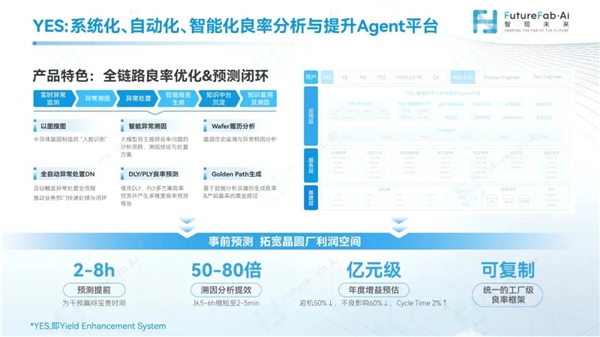 在探索前沿技术之外,智现未来更聚焦“技术落地产业”,现场发布将多智能体技术与一线半导体高端制造领域高度结合的新产品——YES(Yield Enhancement System ),智能良率优化与提升Agent平台。