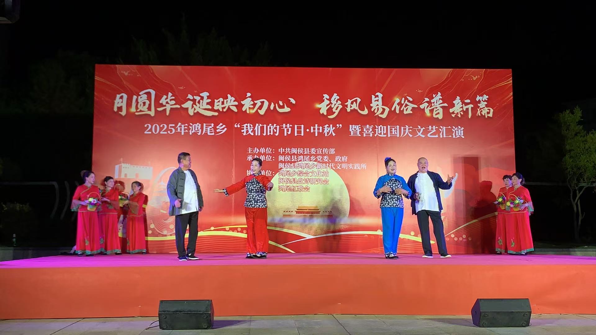 本次文艺汇演由闽侯县鸿尾乡党委、政府及鸿尾乡新时代文明实践所联合承办,鸿尾乡综合文化站、闽侯县盘诗研究协会、鸿尾红歌会协办,以“月圆华诞映初心,移风易俗谱新篇” 为主题,紧扣双节氛围与民生需求,打造了 “文化传承 + 新风倡导 + 群众互动” 三位一体的活动内容。