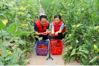 一旁的村民刘秀园笑得合不拢嘴:“以前,咱们的西红柿只能进入当地的菜市场,现在咱们按级划分、统一包装,搭上快递便车,咱们的农产品也能进入大城市卖个好价钱啦!”