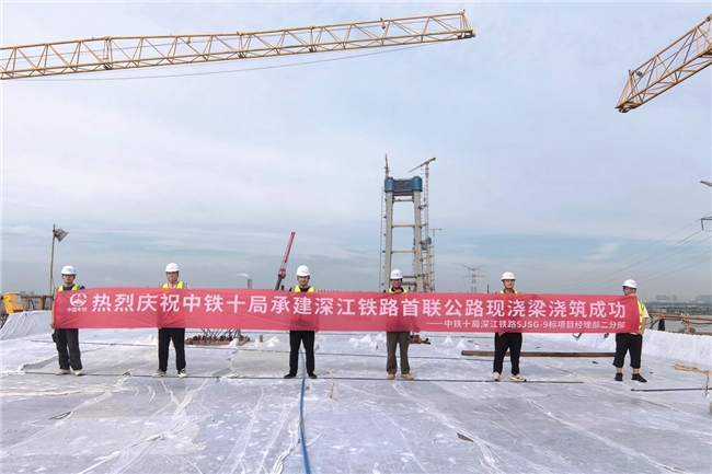 9月28日,由中铁十局承建的新建深圳至江门铁路(以下简称“深江铁路”)9标首联公路现浇梁浇筑完成,标志着项目公铁合建段上部结构施工全面启动,为后续现浇连续梁施工提供了重要技术范本。