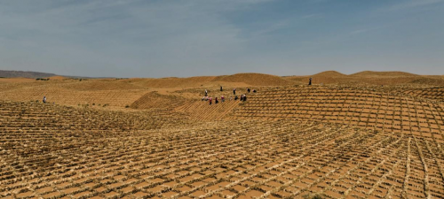黄沙漫无边际,铺展在祁连山与贺兰山之间的辽阔地域。一刻也不停息的细沙,让这片面积4.3万多平方公里的沙海,在阿拉善高原上绵延起伏。腾格里沙漠,我国第四大沙漠,其东南缘的宁夏中卫市,是腾格里沙漠向东南扩张的唯一出口,也是“三北”工程六期黄河“几字弯”攻坚战区的重点治理区。