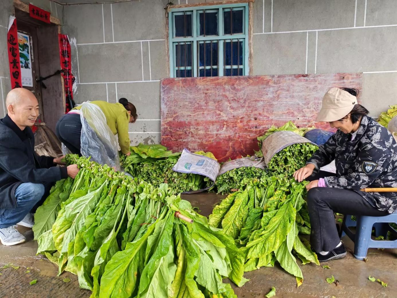 为让烟农掌握技巧,技术员们直接走进烟田,边采收边讲解。针对缺乏经验的烟农张常德,技术员全程“包办”,从识别成熟烟叶到采摘技巧,一步步耐心指导,还帮忙搬运烟叶。“多亏了技术员上门帮忙,今年采的烟叶看着就舒心!”张常德笑着说。