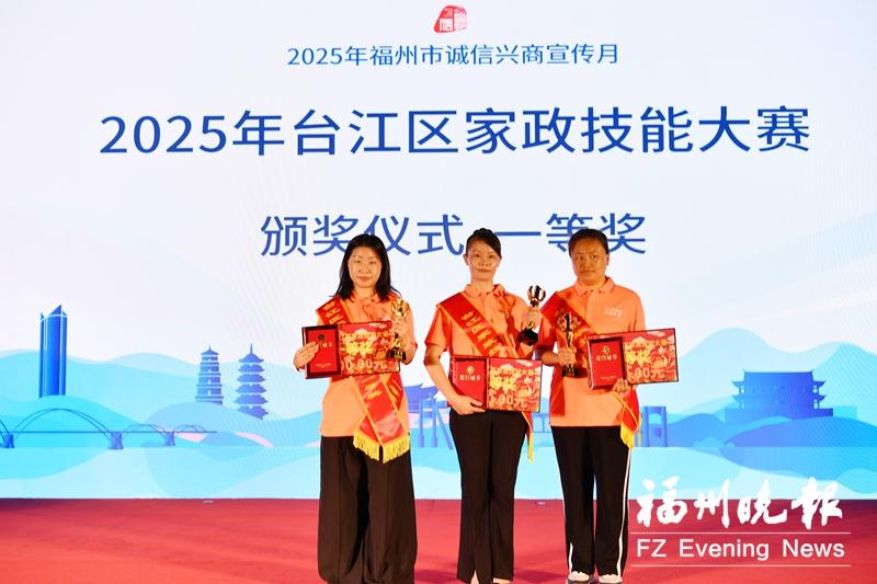 2025年台江区家政技能大赛颁奖仪式上,一等奖获得者上台领奖。