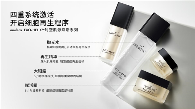 “真正的肌肤再生,是一个精密而连贯的生物学过程。它始于细胞的自我清理,经由深层信号的修复与指令传递,最终实现结构与功能的长期稳定,形成一个‘清除‑修复‑巩固‑再生’的完整闭环。”Daisy进一步解释。在外泌体系列中,amilera安觅理通过抛光水、再生精华、大眼霜和赋活霜的协同,实现信号的叠加、时序的衔接与功效的倍增,共同构建一个有机协作的再生生态。