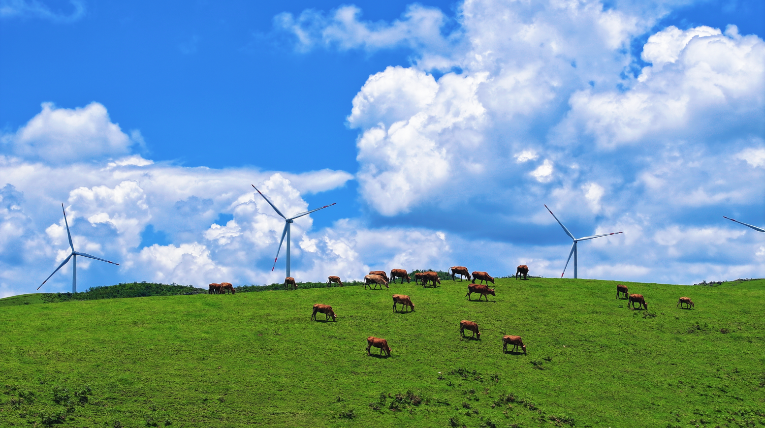 在云南省文山壮族苗族自治州丘北县的舍得草场,天还未亮,整片草场便浸润在乳白色的晓雾里,待第一缕晨曦刺破云海,沉睡的山峦才被温柔唤醒。最撼动心魄的,是天地交界处那片错落的风车矩阵 —— 巨大的叶片从云海中缓缓探出,伴着悠然的旋转,在苍穹与大地之间划出一道道优雅的弧线。