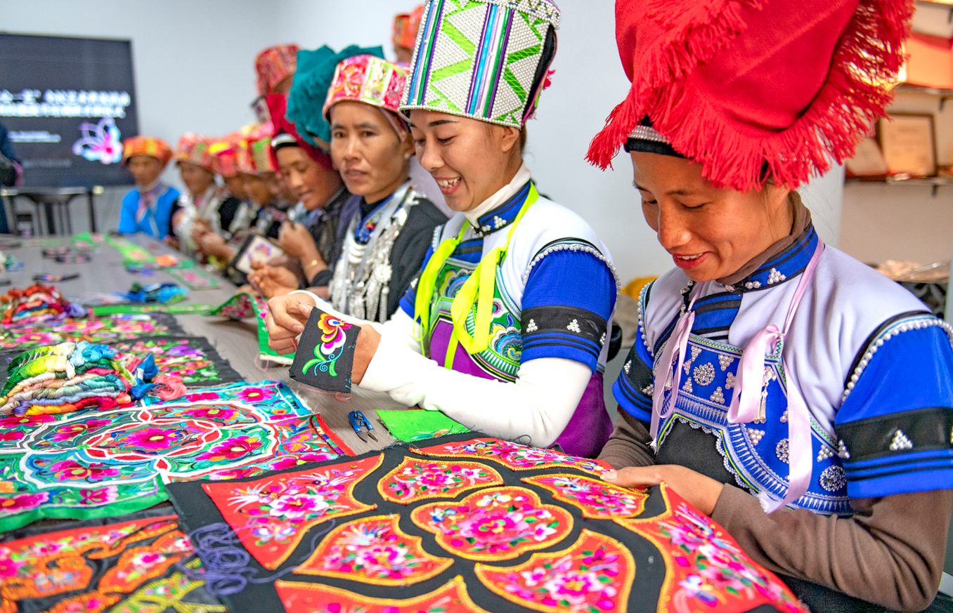 一根根绣花针、一缕缕五彩线、一台台绣机…… 在中国云南省文山壮族苗族自治州马关民族服饰产业园,近3000平方米的机绣车间里,100多台刺绣机整齐排开,机声隆隆。工人们正紧张地抓生产、赶订单,不一会儿,一幅幅绣有花鸟鱼虫或特色民族图案的精美绣品便成形了。如今这里采用 “电脑设计花样模板 + 绣花机制作” 的模式,既能大幅提高生产效率,又完整保留了民族刺绣的传统韵味,成品针脚细密、图案精致,深受市场青睐。