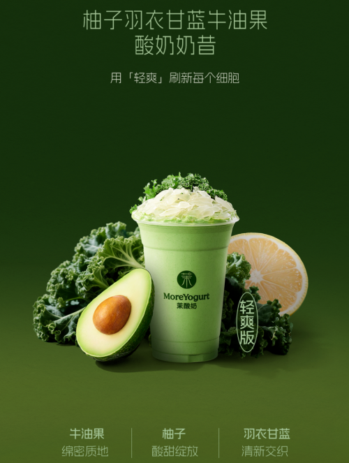 作为中国牛油果酸奶奶昔品类的首创者和定义者,茉酸奶从不惧怕竞争。面对越来越多的品牌开始模仿跟风牛油果饮品,茉酸奶并未陷入同质化竞争的泥潭,而是另辟蹊径,重磅推出【柚子羽衣甘蓝牛油果酸奶奶昔】和【芭乐牛油果酸奶奶昔】两款全新产品,进一步巩固其在细分市场的领先优势。