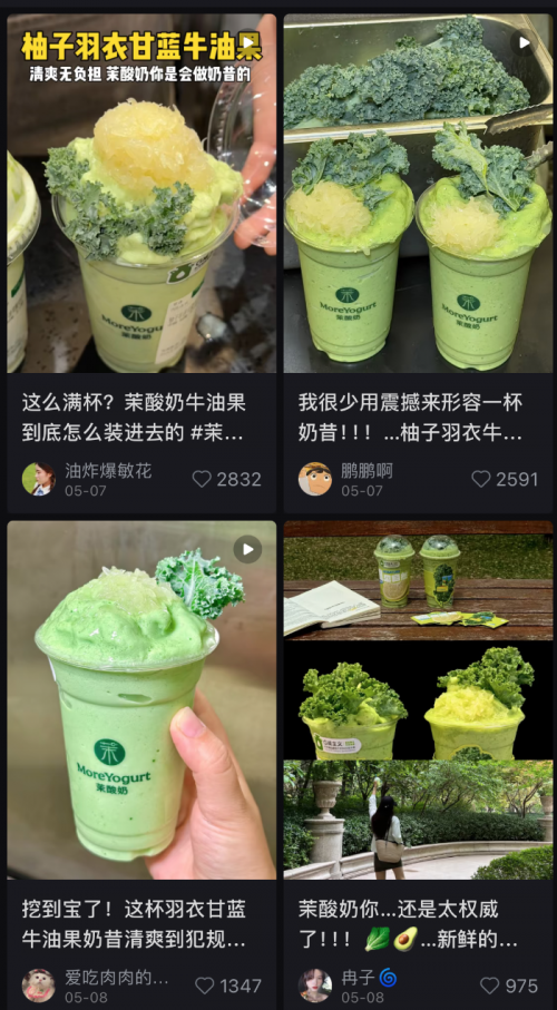 好的产品,从来不缺欣赏者。两款新品一经上市,便迅速俘获了消费者的心。在小红书中,不少消费者被柚子羽衣甘蓝牛油果酸奶奶昔深深吸引,他们说“牛油果的醇厚加上羽衣甘蓝的清香,堪称‘仙品’,清爽又解腻”;同时也有不少同行也惊叹茉酸奶的创新能力,感叹在牛油果饮品板块只能做茉酸奶的“追随者“。