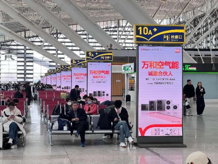 随着万和空气能与兆讯传媒签订战略合作协议,双方将通过全方位的高铁传媒矩阵,实现全国性的地域广告覆盖。五一期间,高铁站迎来了如潮水般的客流,学生流、商务流、旅游流、探亲流等交织在一起,形成了巨大的人流漩涡。在这人流最集中的地方,万和空气能强势 "霸屏"400 + 核心城市交通枢纽,成为一道亮丽的风景线。其高频次、高密集的品牌形象输出,将品牌推向了新的高度,大大提高了万和空气能的知名度。