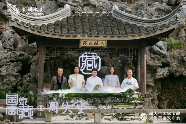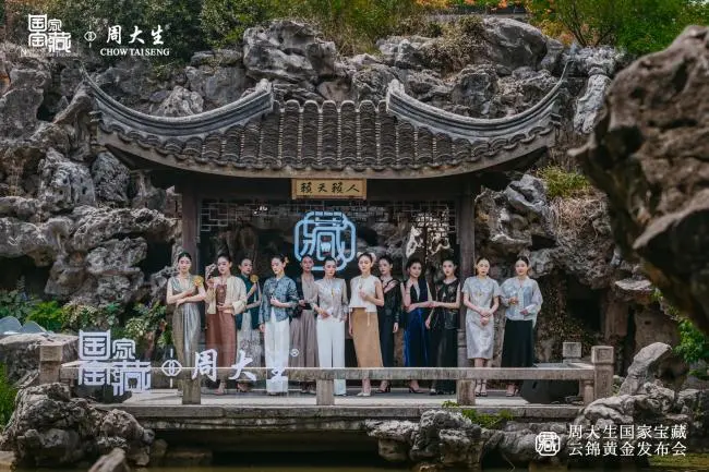2025年5月20日,周大生×国家宝藏品牌于南京芥子园举办了一场别开生面的尊享品鉴暨云锦黄金发布会,深度聚焦国韵锦绣·云锦系列新品,旨在通过沉浸式的文化体验,向大众传递“可佩戴的国宝,可传世的家藏”的品牌主张等理念。周大生董事副总裁郭晋,国宝家藏品鉴官张梓琳,云锦国家级非遗代表性传承人金文,中国珠宝首饰设计大师任进等嘉宾及重要渠道商莅临发布会现场,深度品鉴国宝文化精粹,共话文化传承与创新发展的路径,共同见证这场传统文化与时尚交融的文化金品盛会的成功举行。