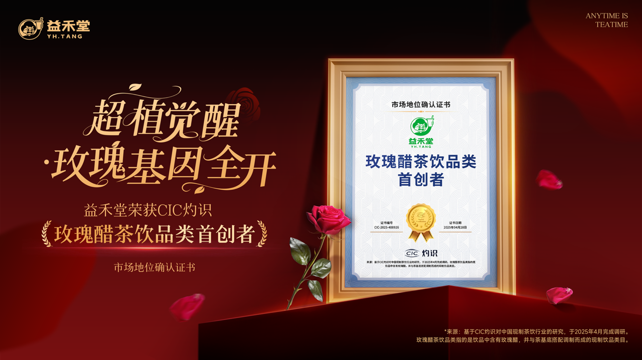 近日,益禾堂获得由知名权威咨询机构CIC灼识授予的“玫瑰醋茶饮品类首创者”市场地位确认证书!