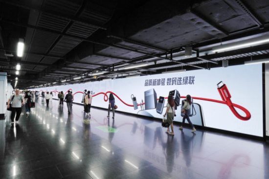另一方面巧借节日 "连接" 寓意,在上海陆家嘴展开112米“超长联接”,并在10个城市地标大屏、31个城市机场、18城商场大屏、44个城市高铁站、20个城市楼宇电梯间进行“品质新体验 数码选绿联”全面投放。