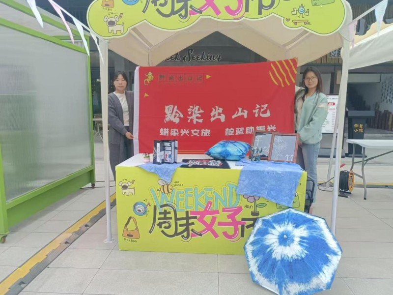 为探索非遗技艺与现代商业的融合路径,“黔染出山记”实践团携手贵州乡贤里商业管理有限公司、贵阳市花溪区合心社会工作服务社,共同打造大学生手工艺市集,让蜡染等非遗文化在青年创意与商业场景中焕发新生。