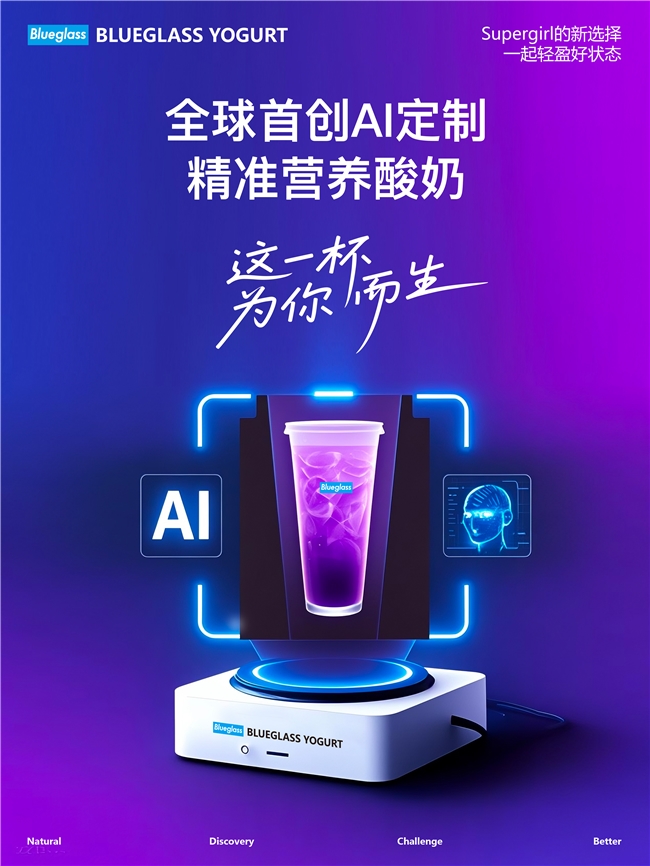 “这不仅是酸奶,更是可食用的健康管理方案。”Blueglass表示,"我们通过AI建立起用户体征数据与营养需求之间的算法模型,让每杯酸奶都成为私人定制的“营养处方”。