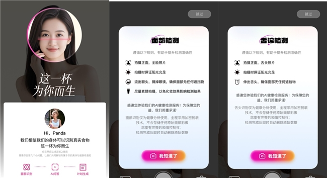 Blueglass此次上线的AI定制服务,首次将"面诊+舌诊+健康问诊"三重智能诊断系统应用于食品消费场景。用户通过小程序完成5分钟AI交互,即可获得涵盖肠道菌群健康、代谢水平、皮肤状态、情绪压力等维度的个性化健康评估报告。系统依托超过百万级的健康数据分析模型,突破传统食品行业"一刀切"的研发逻辑,实现从"大众配方"到"一人一策"的跨越式升级。