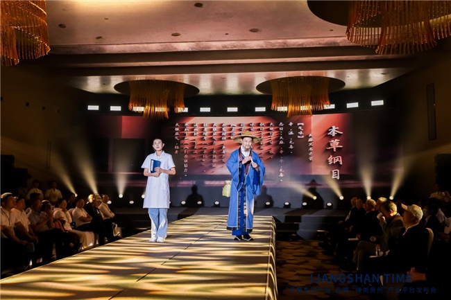发布会以一场穿越时空的《天麻・本草千年行》情景表演拉开帷幕。当 “明代医药学家李时珍” 与 “现代天麻研究员” 在舞台上展开对话,大屏同步以沙画演绎天麻从《本草经》“赤箭” 到现代产业明珠的千年历程,国学大师刘长焕专门为天麻创作的《天麻美德赋》成为本场文化赋能的灵魂注脚。